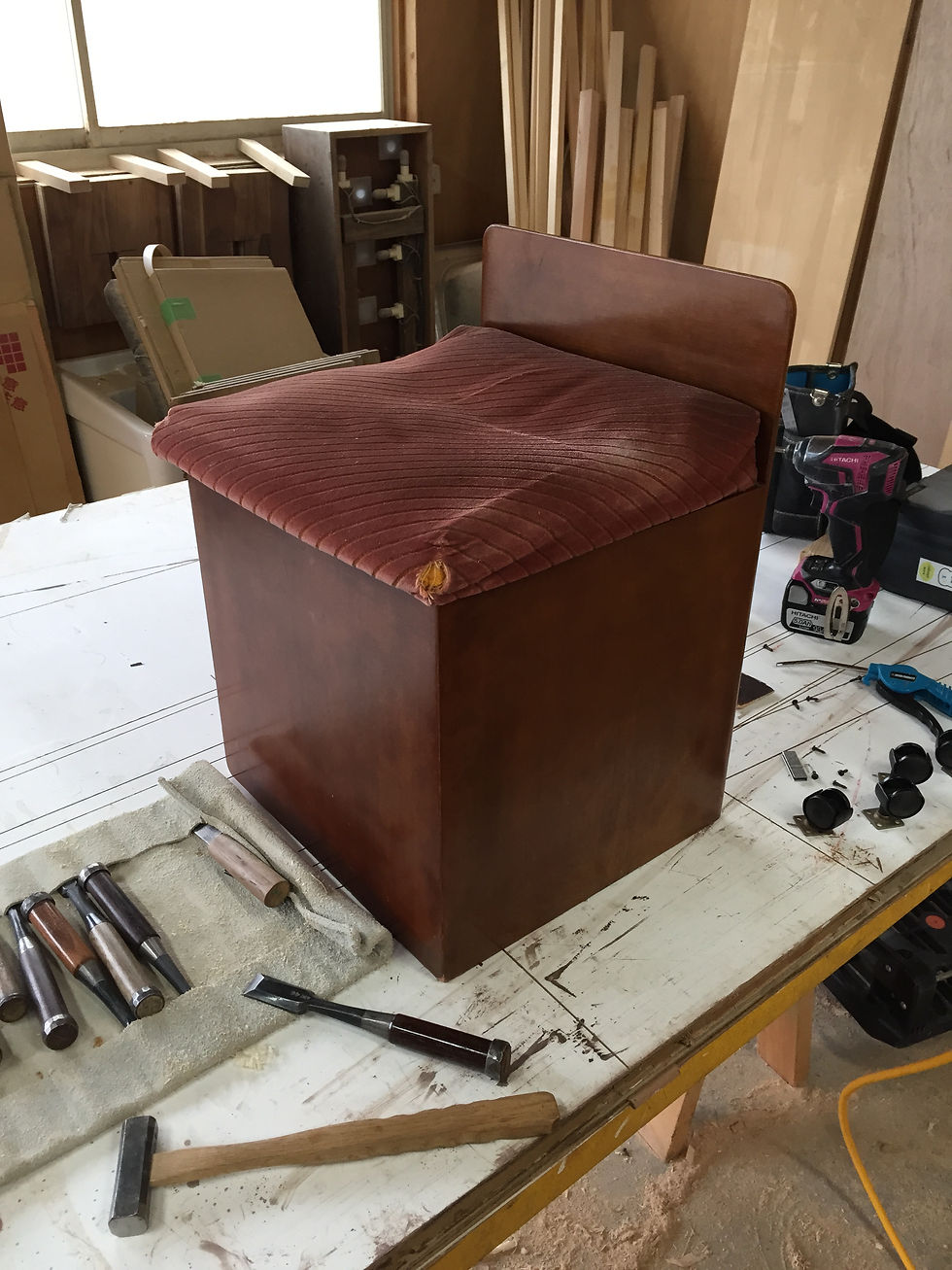 三面鏡とセットで購入したスツール。20年以上大切にご愛用されているものでした。